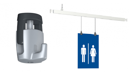 The ceiling cimaise , which allows you to hang your works of art directly from the ceiling, thus offering an interesting alternative to the wall cimaise . The cimaise with integrated lighting is a practical solution to highlight your decoration while illuminating the room. The cimaise rail hooks combined with perlon wire or steel wire allow you to hang your paintings in a stable and secure manner.