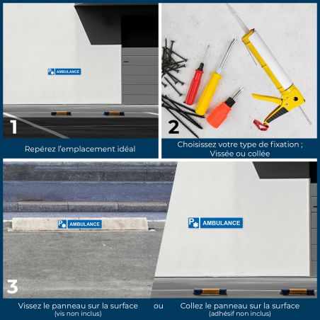 Grâce à ses perçages intégrés de 4,5 mm aux extrémités, ce panneau se fixe aisément par vissage ou clouage. Il peut également être collé grâce à son poids léger, ce qui permet une pose rapide sur divers supports plats comme les murs, trottoirs ou poteaux. Cette polyvalence facilite son adaptation à tous vos besoins d’aménagement.
