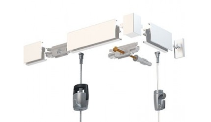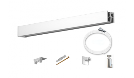 Le pack cimaise complet est la solution clé en main pour la fixation de tableaux. Tout est inclus : les rails, les fixations pour les rails (clips, vis et chevilles), les câbles perlon de 150 cm et bien sûr les crochets pour tableaux.