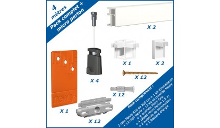 Ce pack est particulièrement pratique pour les personnes qui souhaitent installer rapidement et facilement des cimaises pour accrocher des tableaux ou des cadres.