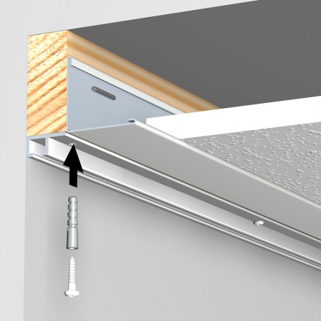 Le pack cimaise Top Rail 8 mètres blanc est la solution idéale pour suspendre cadres, tableaux ou décorations dans vos espaces où le montage mural est impossible ou non souhaité. Fixée au plafond par vissage, cette cimaise offre une alternative esthétique et fonctionnelle, particulièrement adaptée aux vitrines de magasins, galeries d'art ou espaces d'exposition.